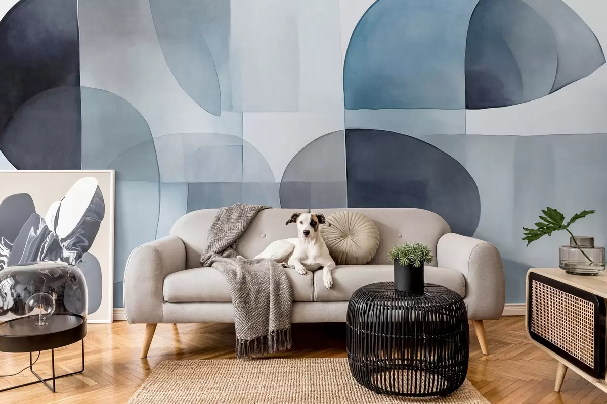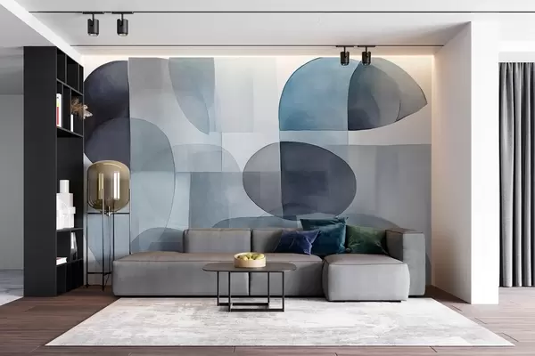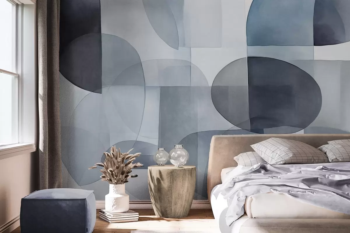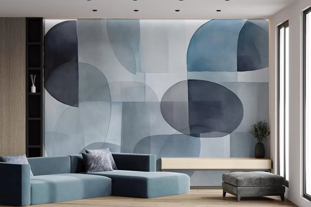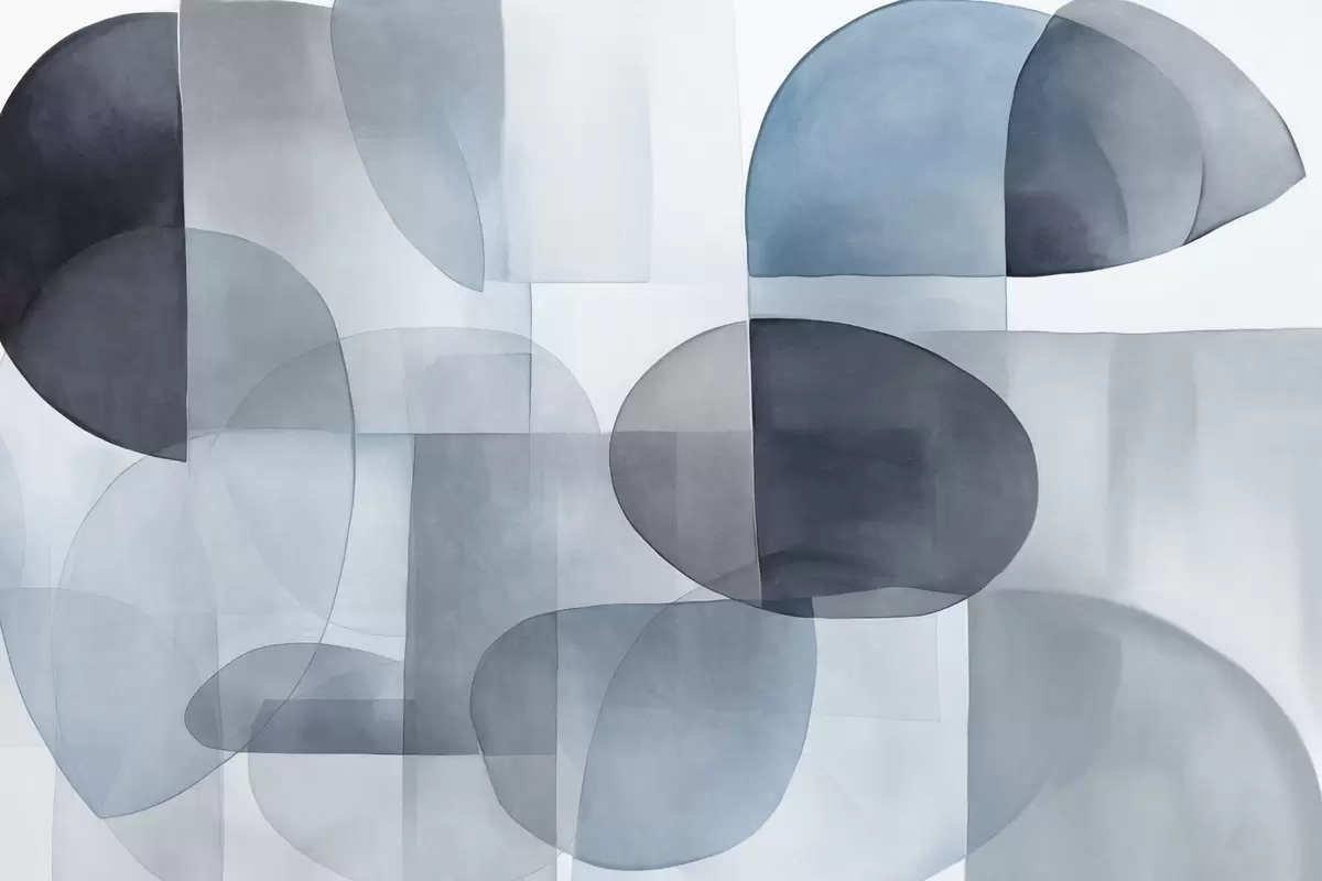Papel tapiz Formas abstractas con textura en tonos grises y azules, tonos apagados, composición minimalista, fondo neutro Nr. w09467v1