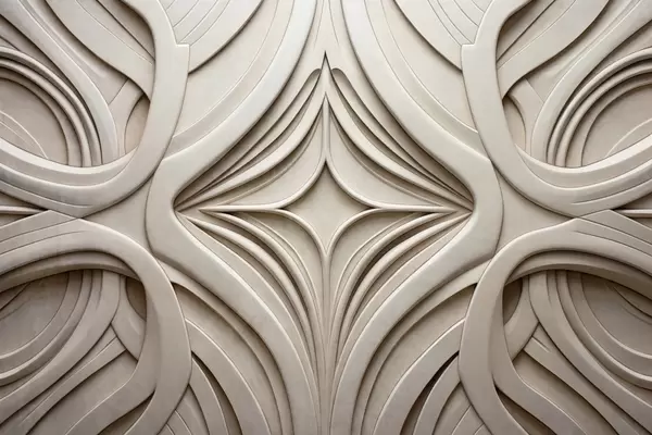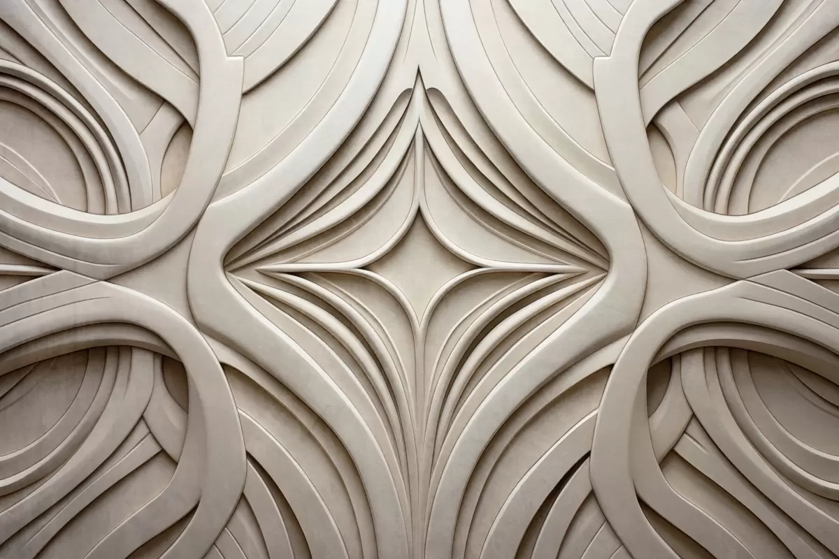 Papel tapiz Estampado geométrico abstracto simétrico con textura, color beige claro, estilo art déco, detalles intrincados Nr. w09473