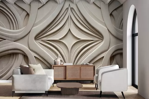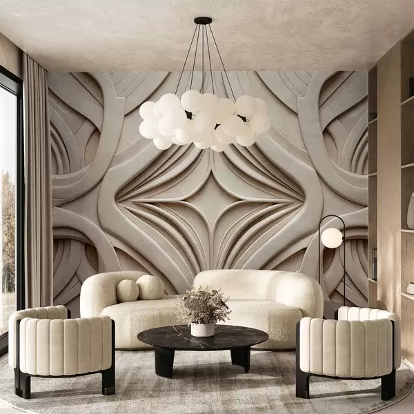 Papel tapiz Estampado geométrico abstracto simétrico con textura, color beige claro, estilo art déco, detalles intrincados Nr. w09473