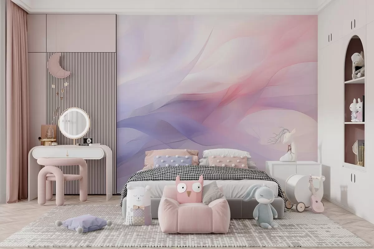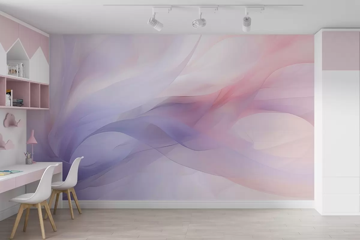Papel tapiz Suaves ondas abstractas en tonos azules y rosas. Nr. w09508