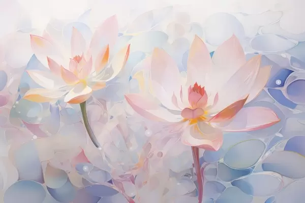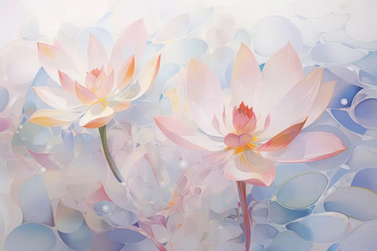 Papel tapiz Flores de loto en tonos pastel suaves, estilo acuarela. Nr. w09512