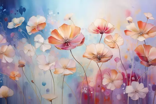 Papel tapiz Flores silvestres brillantes en estilo acuarela salpicada Nr. w09521