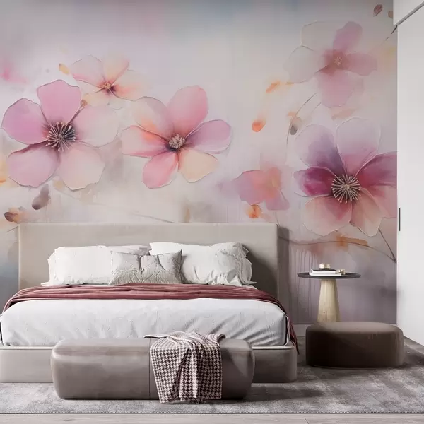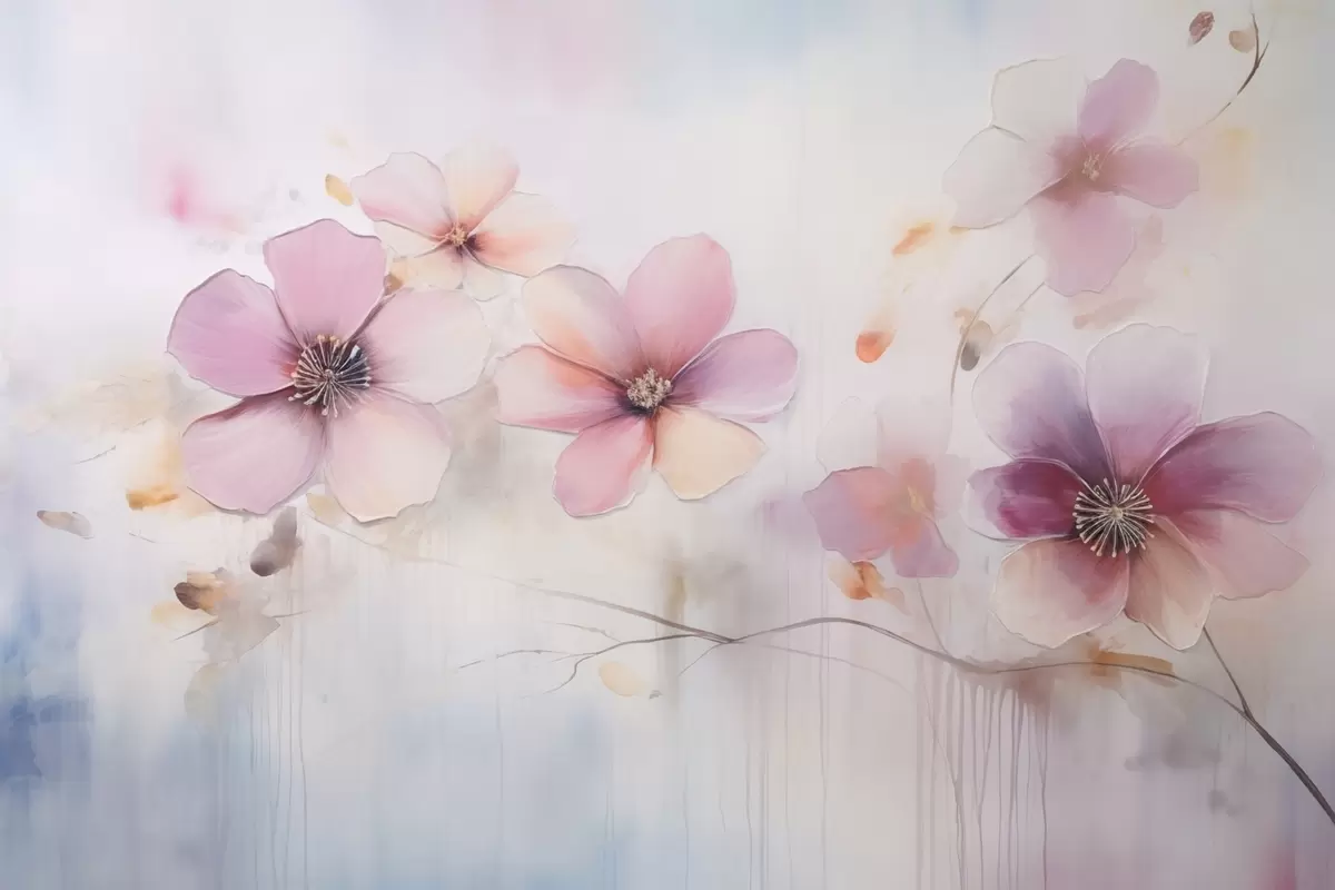 Papel tapiz Rama con flores rosas en estilo acuarela Nr. w09522