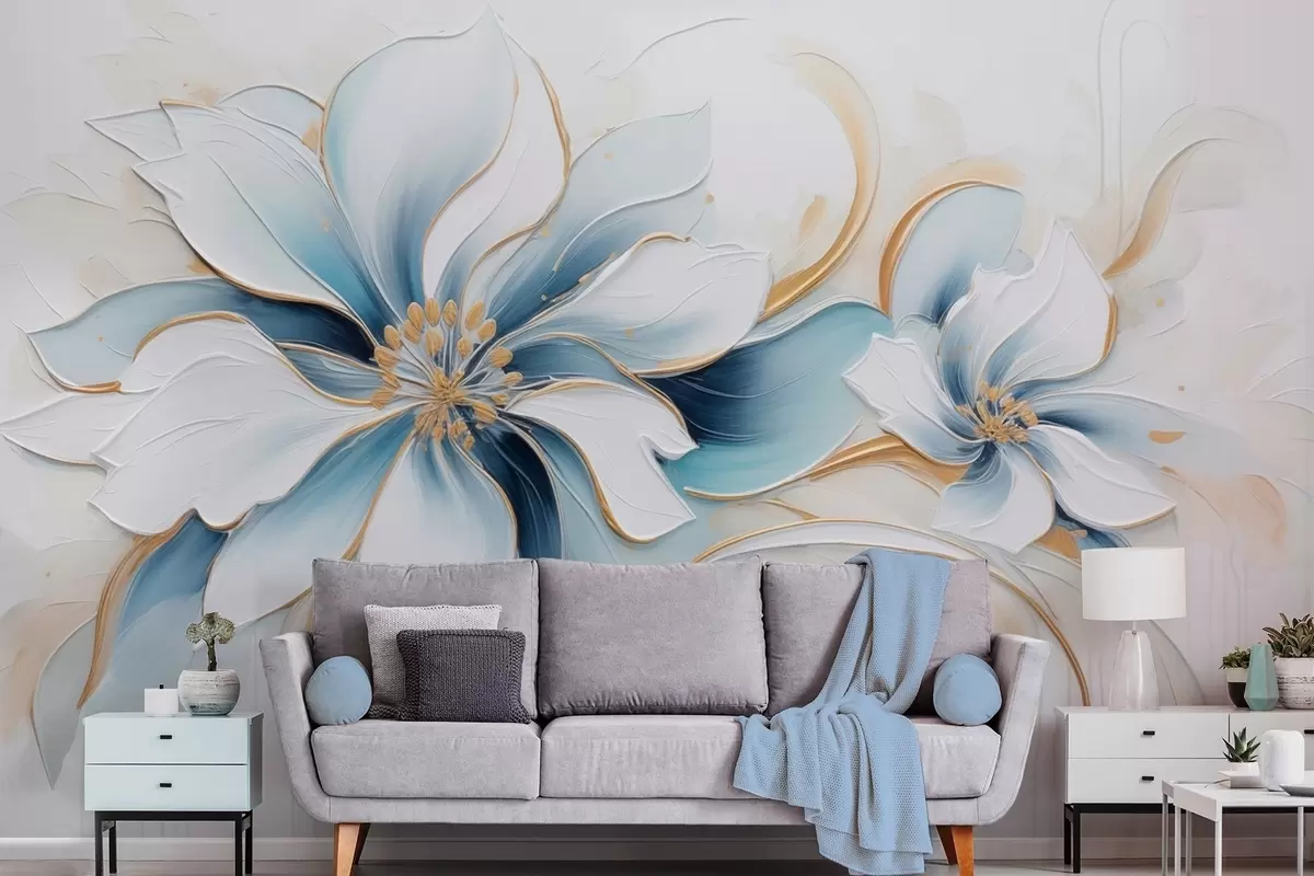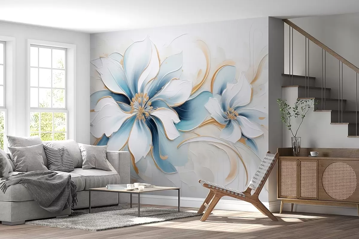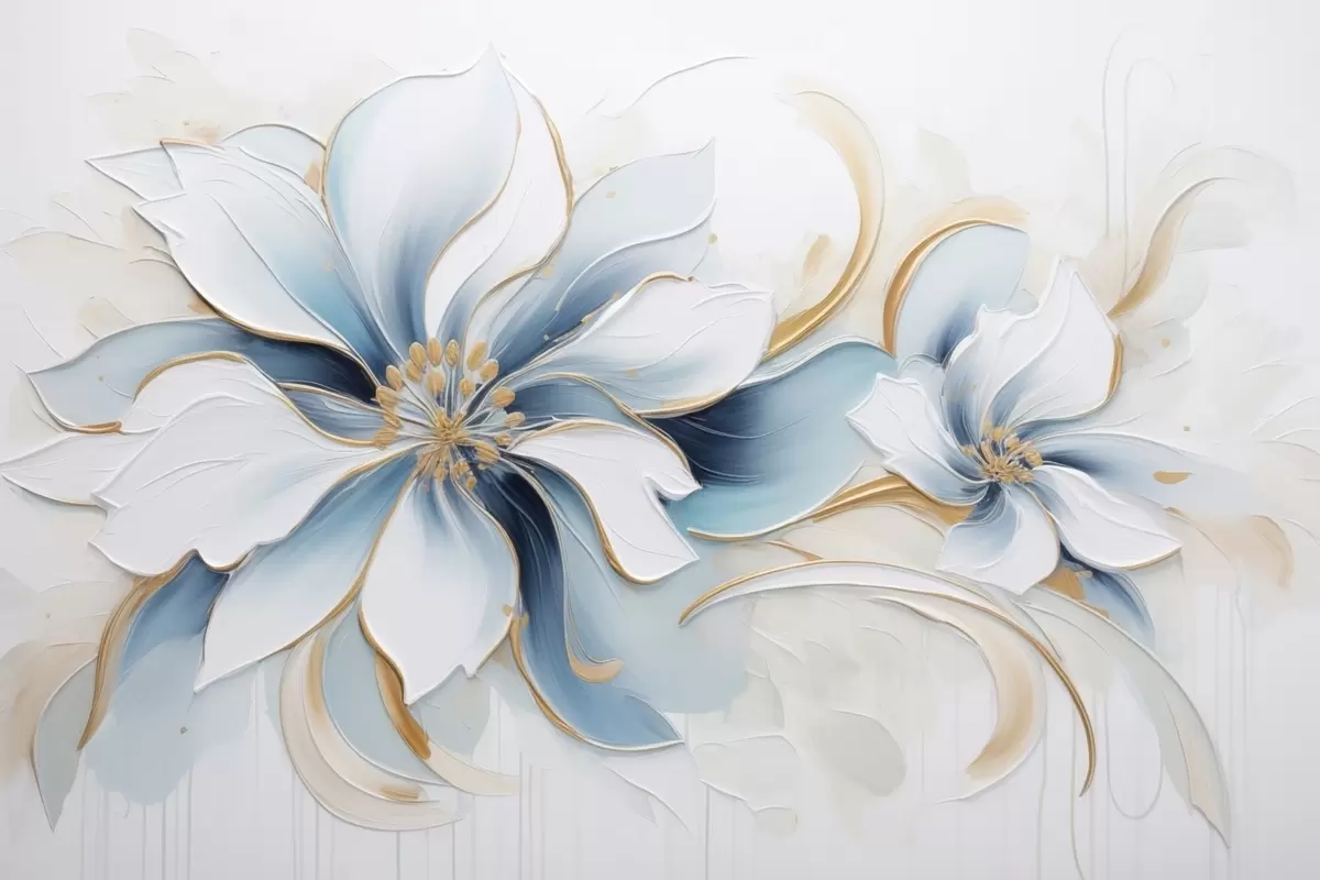 Papel tapiz Abstracción pictórica con flores azules en estilo de pintura al óleo. Nr. w09524