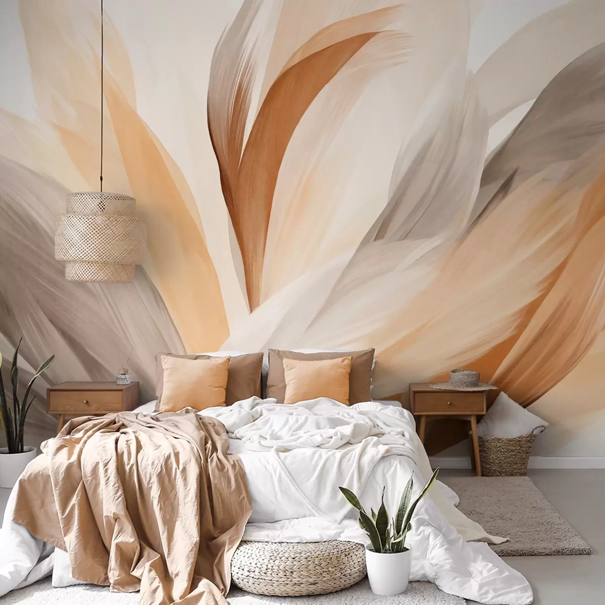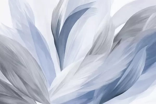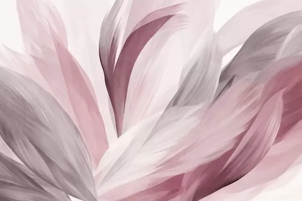 Papel tapiz Plumas abstractas con textura en marrón, blanco y gris y varios tonos, superpuestas sobre un fondo blanco. Nr. w09531