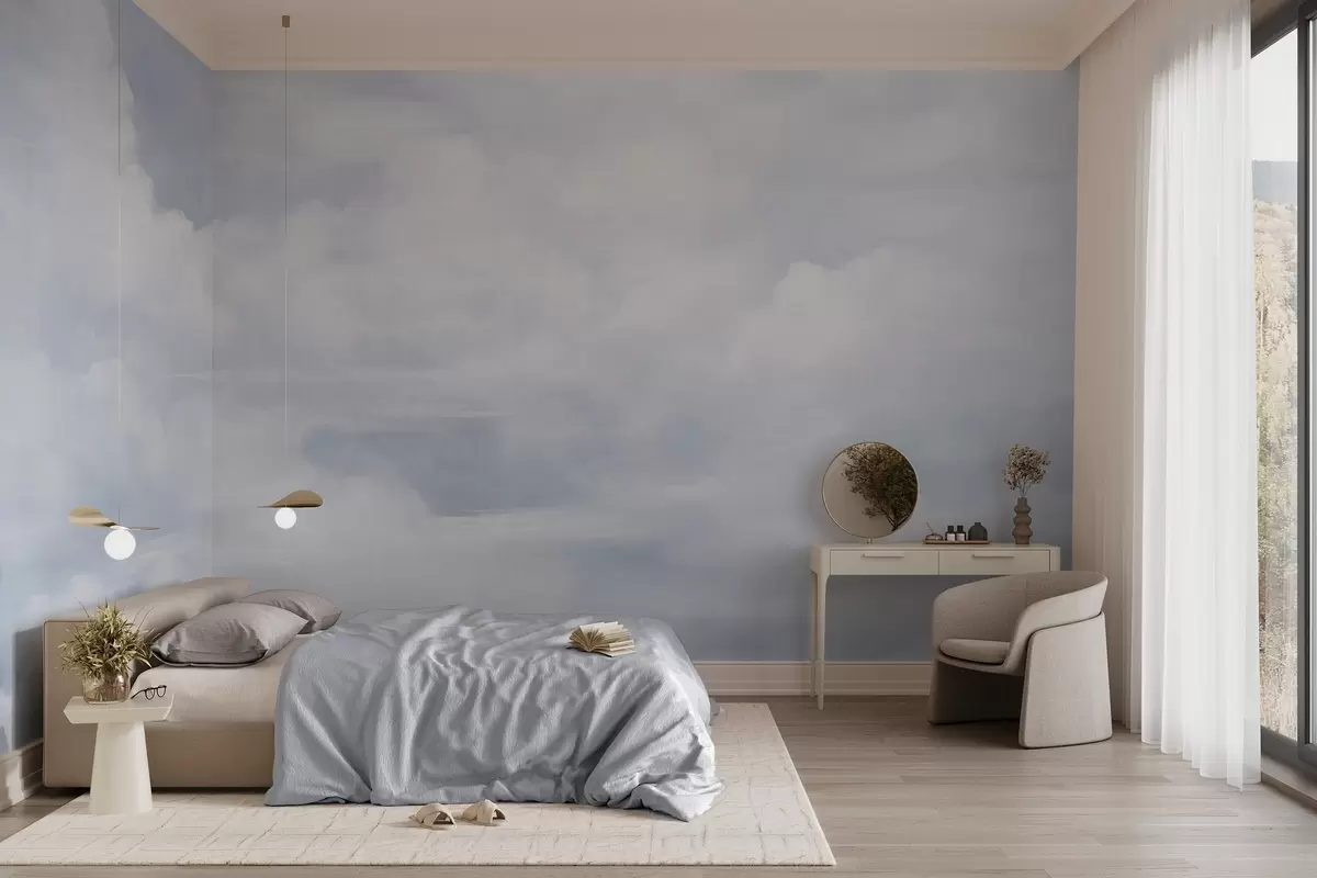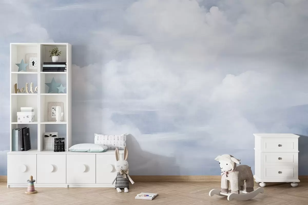 Papel tapiz Cielo con textura pastel lleno de nubes blancas con una estética suave y minimalista. Nr. w09589