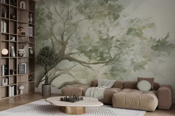 Papel tapiz Árbol con ramas imitación pintura Nr. w09601