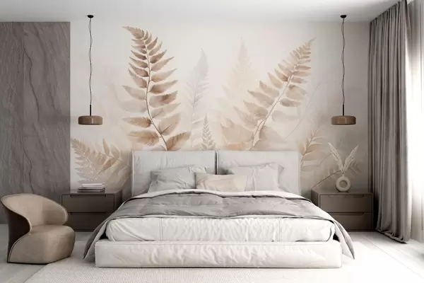 Papel tapiz Hojas secas de helecho con textura en varios tonos de marrón, con un fondo suave y claro en estilo acuarela. Nr. w09615