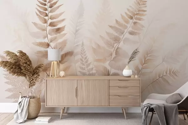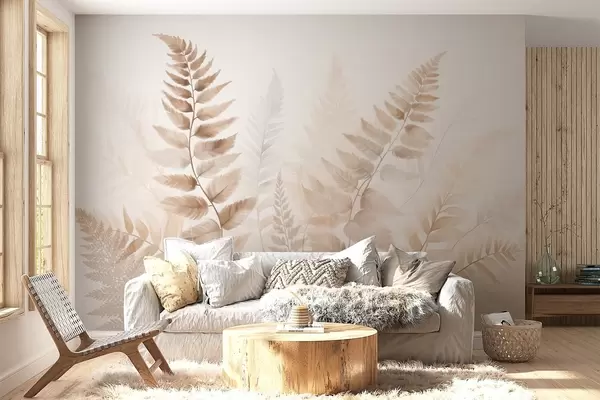 Papel tapiz Hojas secas de helecho con textura en varios tonos de marrón, con un fondo suave y claro en estilo acuarela. Nr. w09615