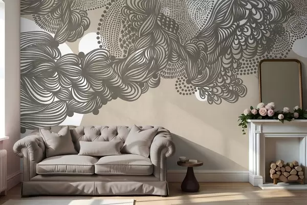 Papel tapiz Diseño abstracto con textura sobre fondo beige, con líneas intrincadas y texturas punteadas. Nr. w09621