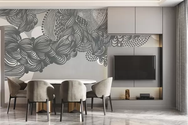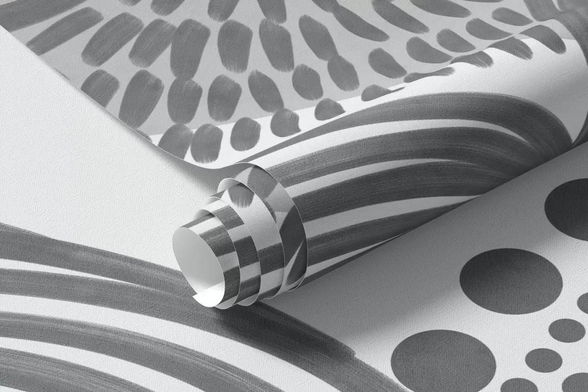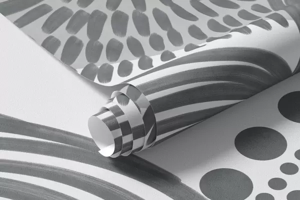 Papel tapiz Diseño abstracto con textura sobre fondo gris, con líneas intrincadas y texturas punteadas. Nr. w09621v1