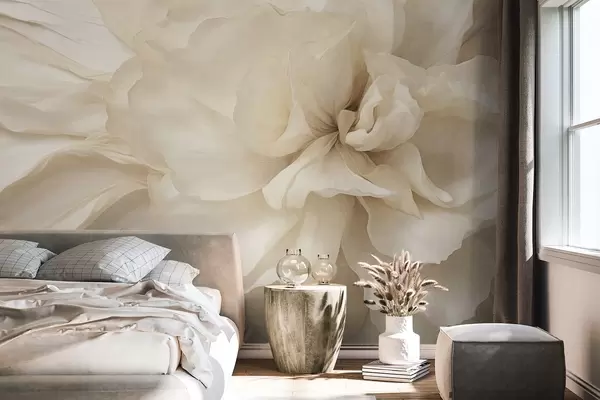 Papel tapiz Flor delicada y texturizada, de color claro, con pétalos translúcidos y un fondo abstracto suave. Nr. w09632