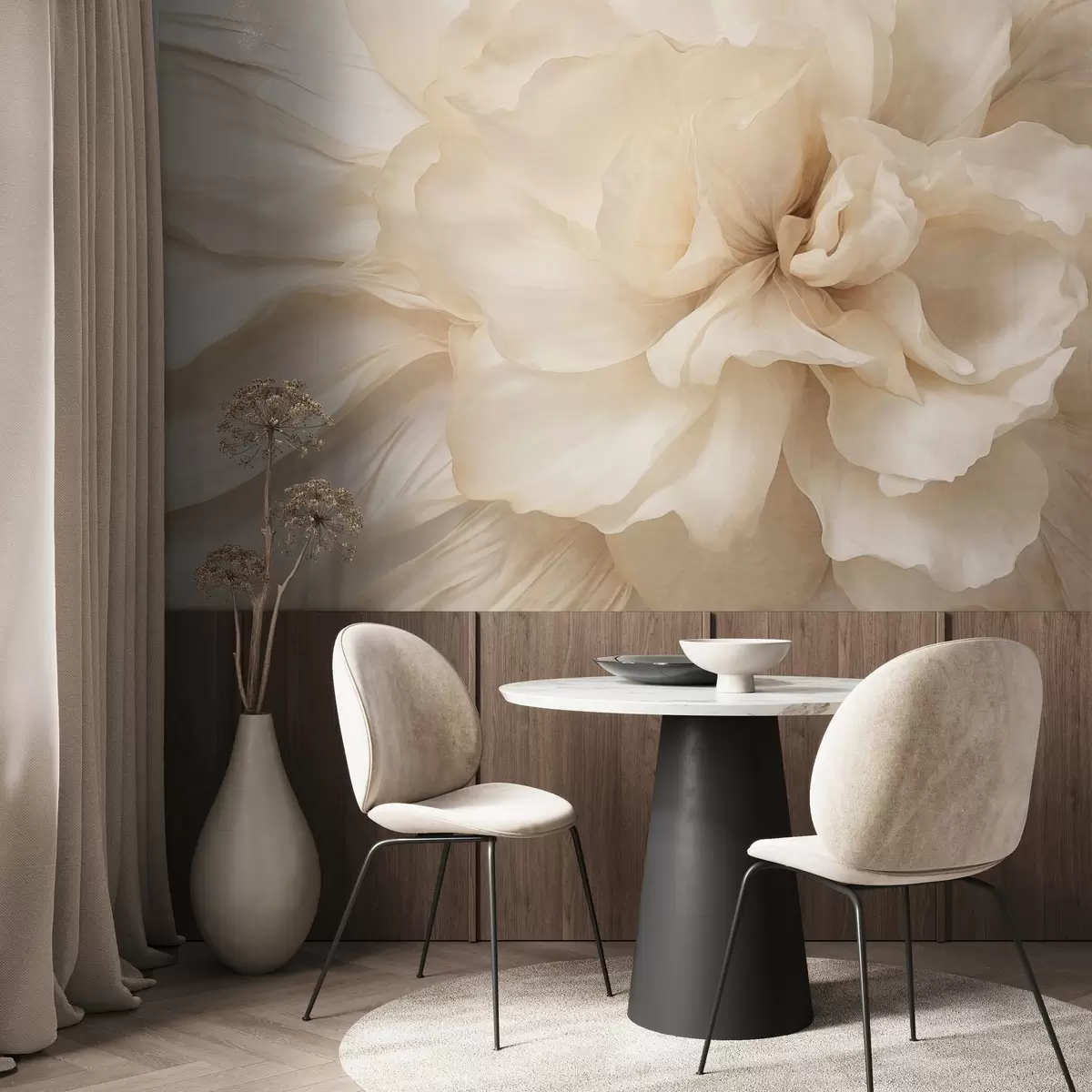 Papel tapiz Flor delicada y texturizada, de color claro, con pétalos translúcidos y un fondo abstracto suave. Nr. w09632