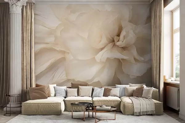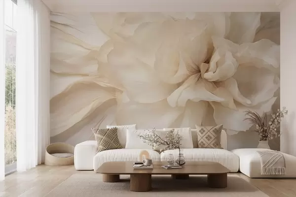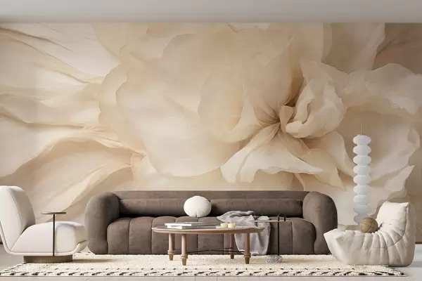 Papel tapiz Flor delicada y texturizada, de color claro, con pétalos translúcidos y un fondo abstracto suave. Nr. w09632