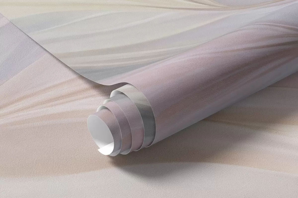 Papel tapiz Hojas suaves en tonos pastel y plumas en tonos rosa, azul y amarillo, estampado abstracto y con textura. Nr. w09634