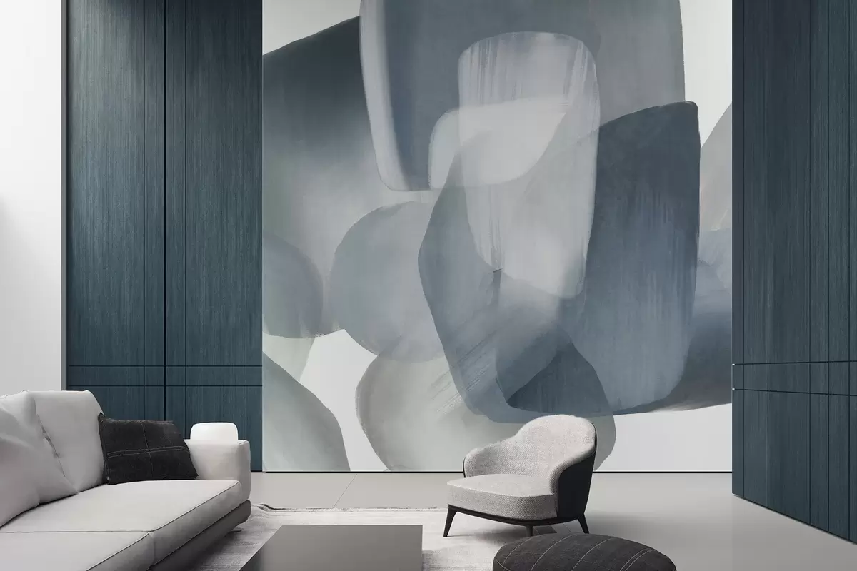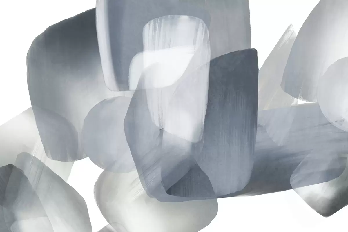 Papel tapiz Formas abstractas con textura en colores azul y gris apagados, con bordes suaves y capas superpuestas. Nr. w09642v1