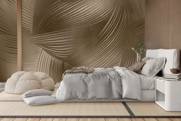 Papel tapiz Estampado abstracto de líneas fluidas y curvas en tonos marrón oscuro que crean un efecto texturizado y moderno. Nr. w09646