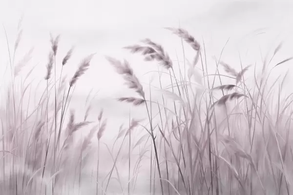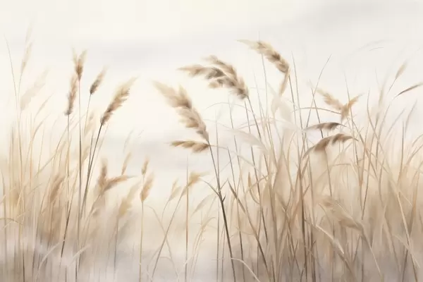 Papel tapiz Hierba seca alta y texturizada con espigas de trigo en el campo sobre un fondo suave y pálido. Nr. w09648
