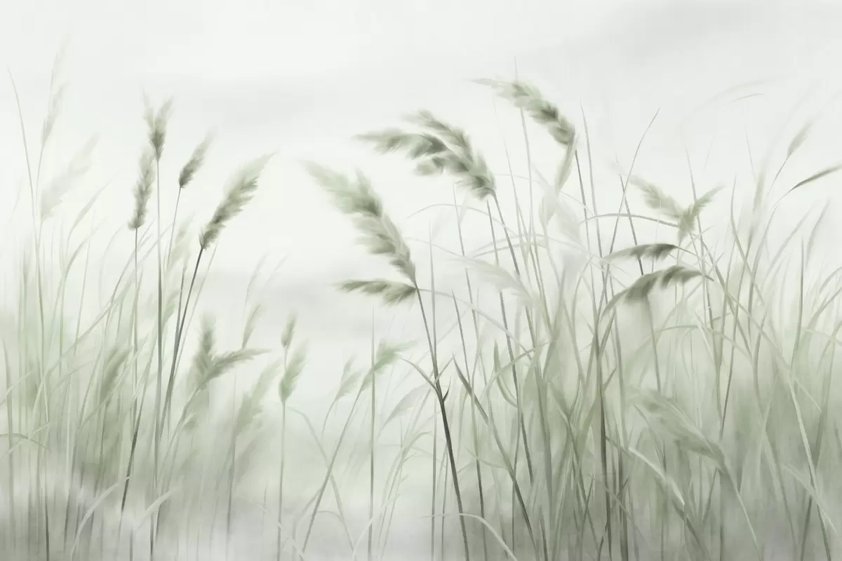 Papel tapiz Hierba seca alta y texturizada con espigas de trigo en el campo sobre un fondo suave y pálido. Nr. w09648v1