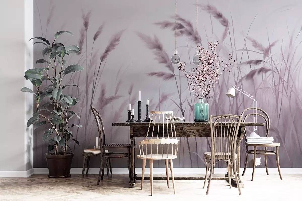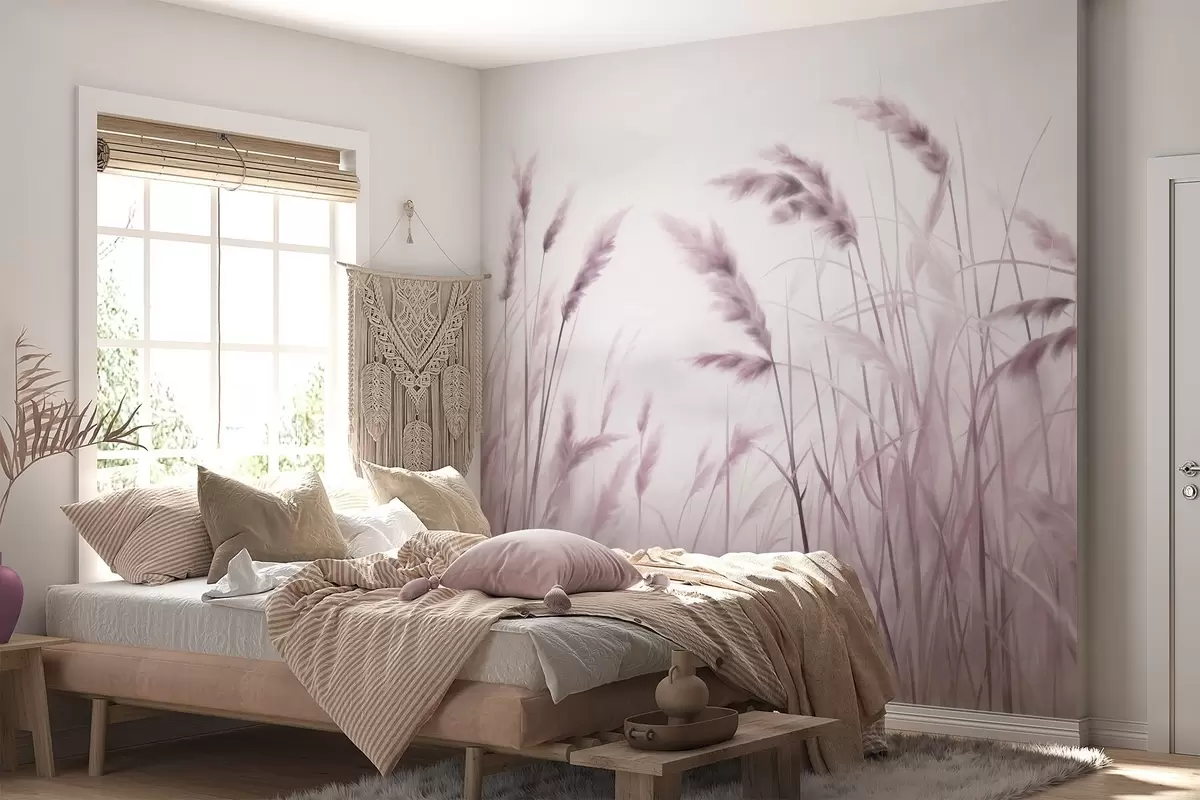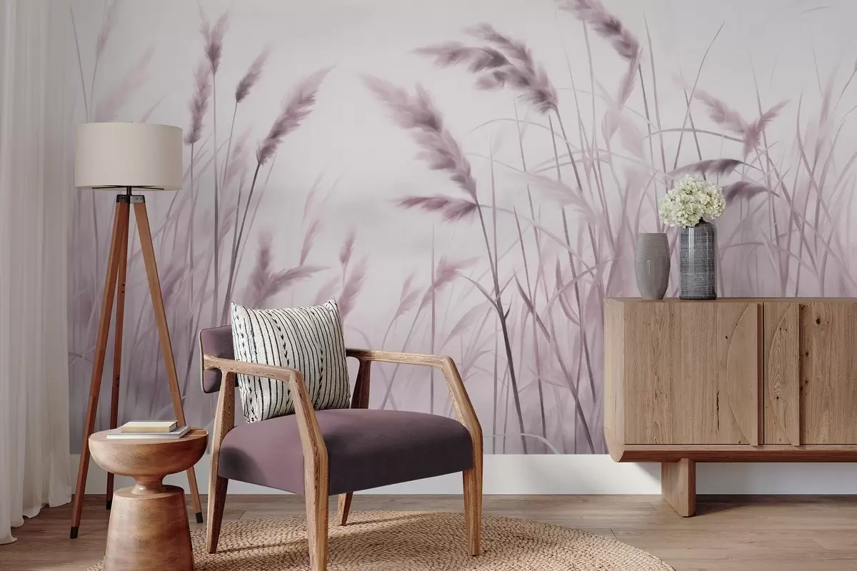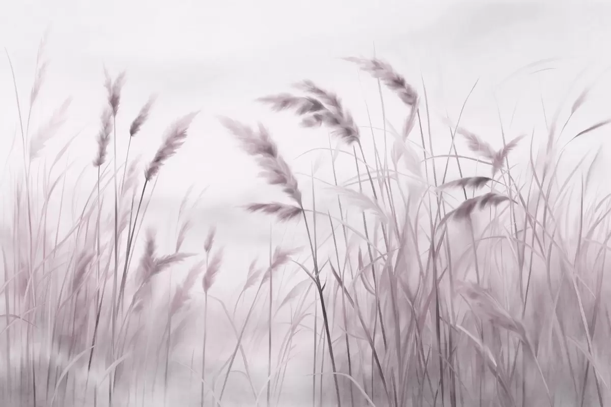 Papel tapiz Hierba seca alta y texturizada con espigas de trigo en el campo sobre un fondo suave y pálido. Nr. w09648v2