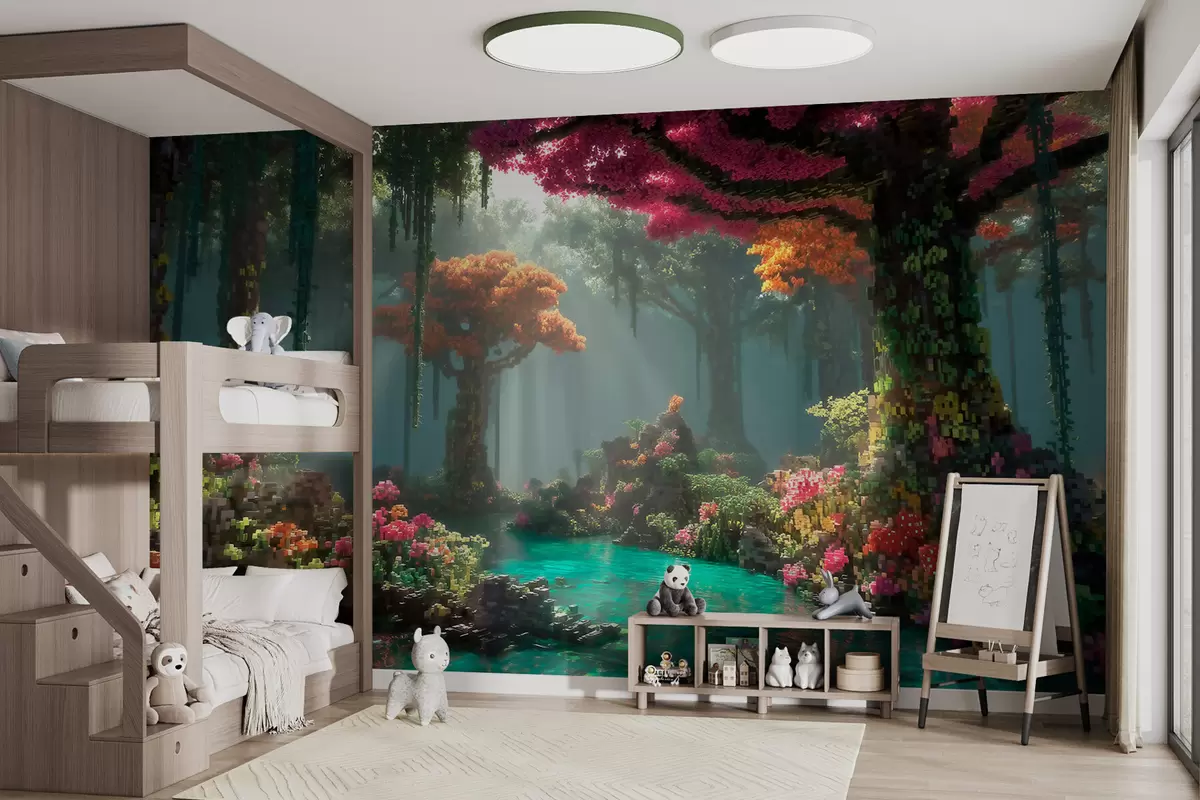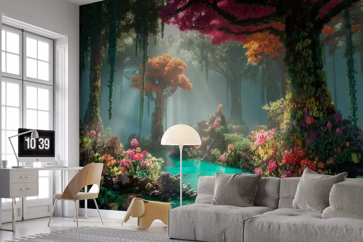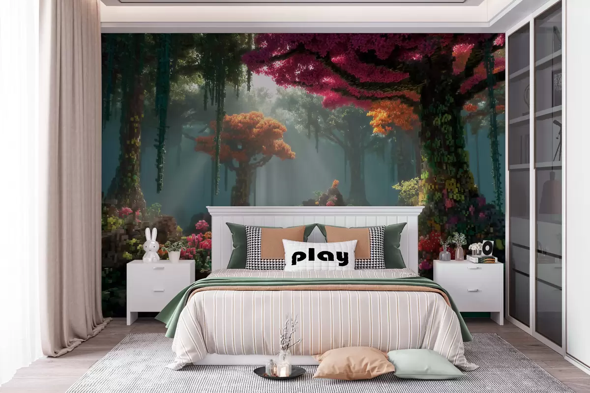 Papel tapiz Bosquecillo de un bosque encantado en píxeles inspirado en los videojuegos Nr. w09683
