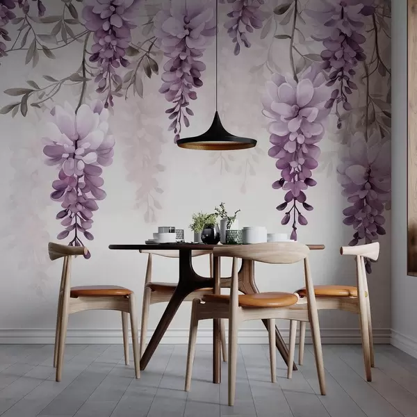 Papel tapiz Delicadas ramas grandes de lavanda colgadas en la pared, imitación acuarela. Nr. w09690