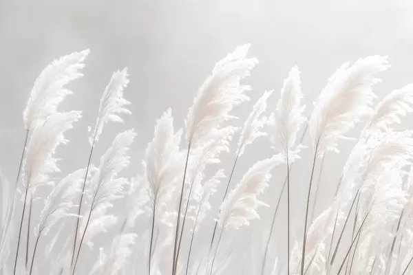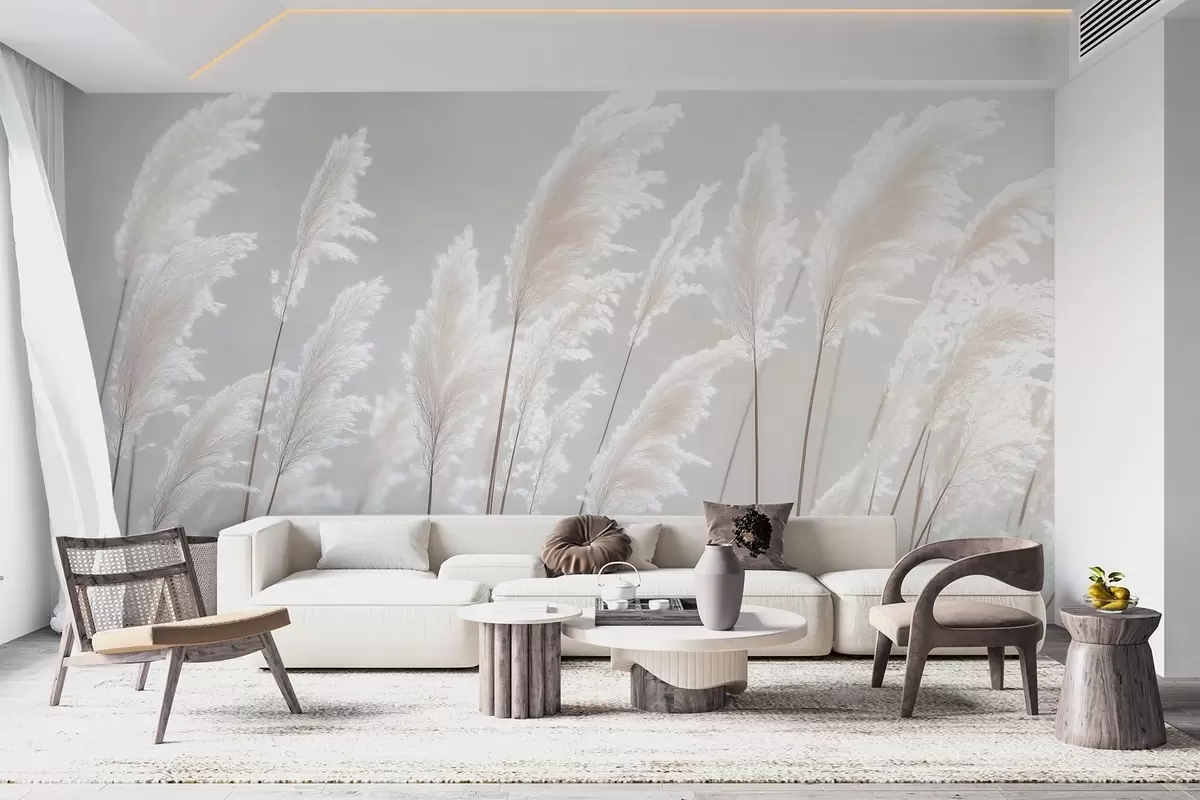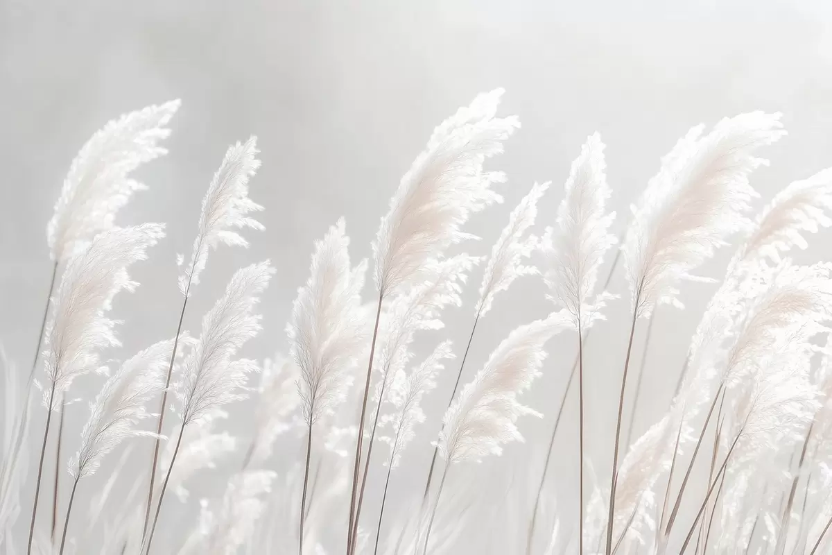 Papel tapiz Suave hierba de la pampa blanca bajo la suave luz de la mañana. Nr. w09717