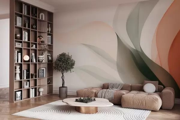 Papel tapiz Olas abstractas en tonos naranjas y verdes. Nr. w09718