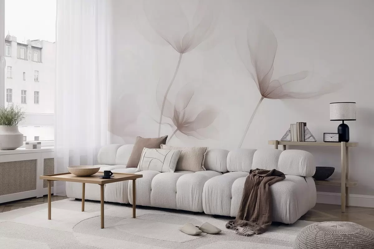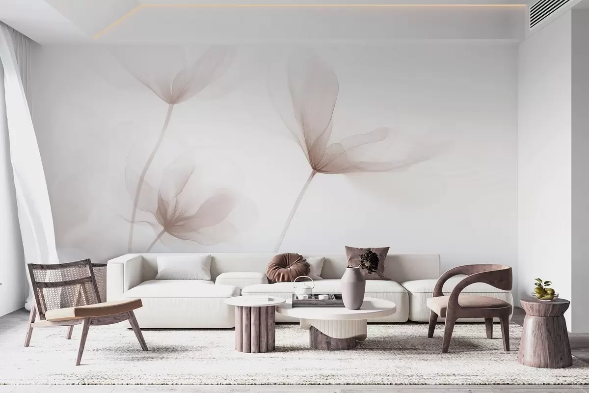 Papel tapiz Flores beige aireadas en un estilo minimalista y ligero. Nr. w09734