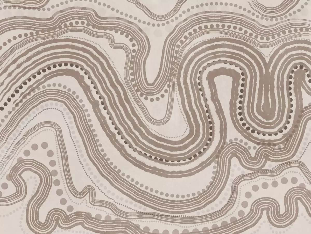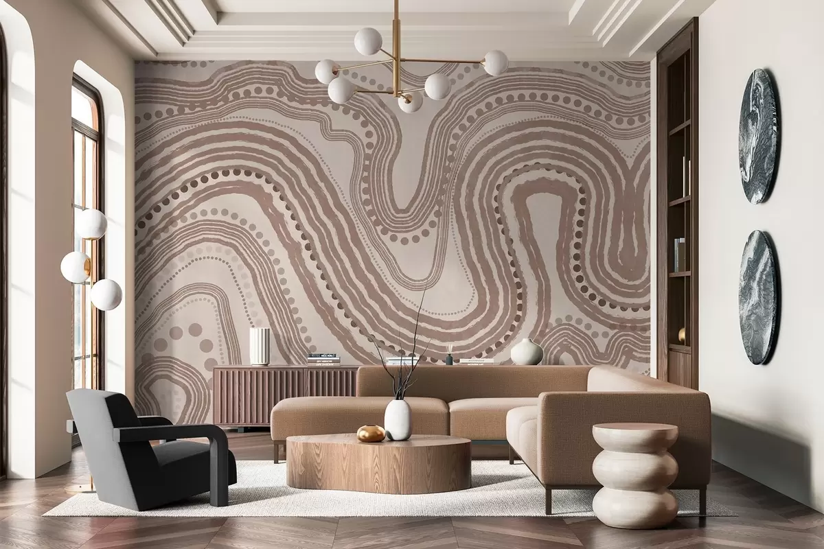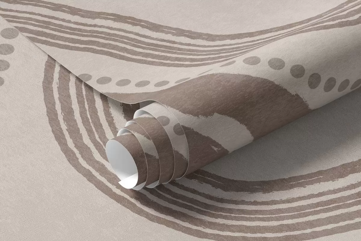 Papel tapiz Líneas onduladas y puntos abstractos en marrón y beige, arte moderno con textura. Nr. w09747v1
