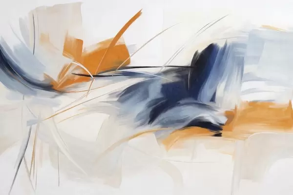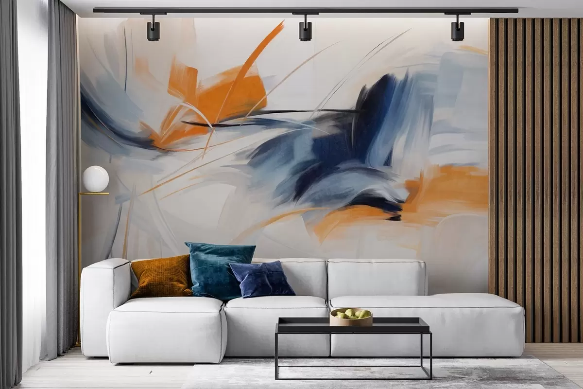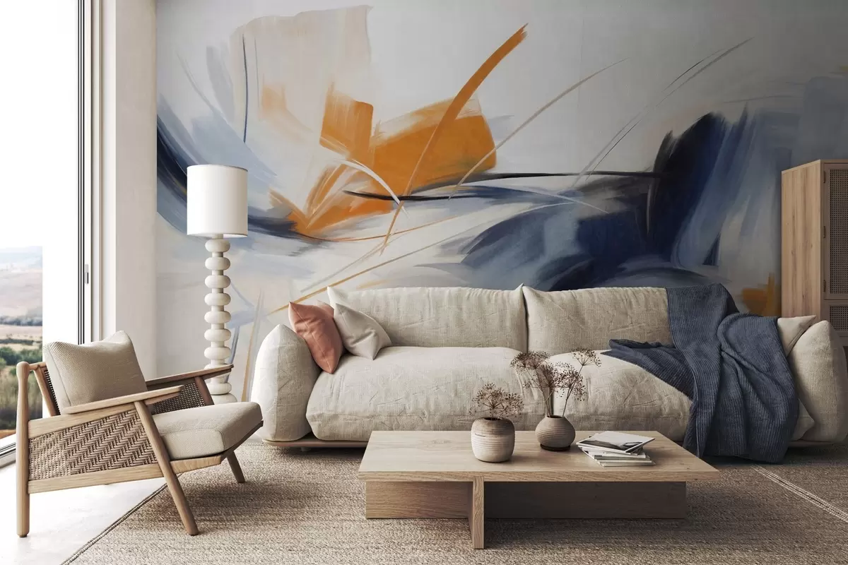 Papel tapiz Estilo de pintura abstracta con pinceladas texturizadas en naranja y azul. Nr. w09755