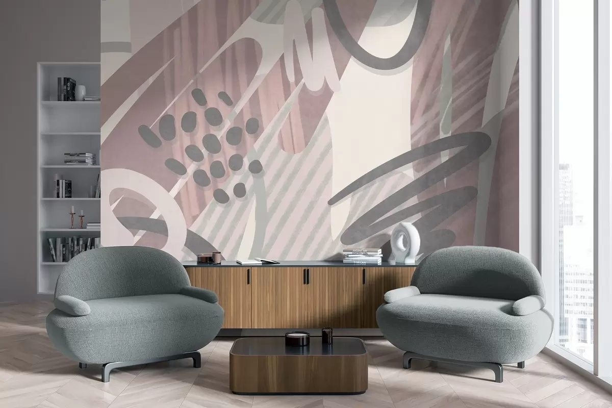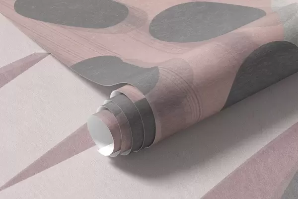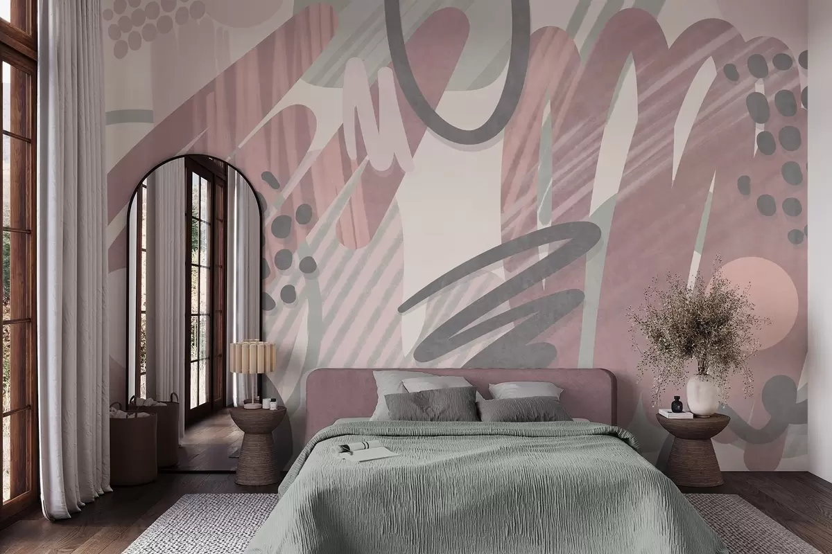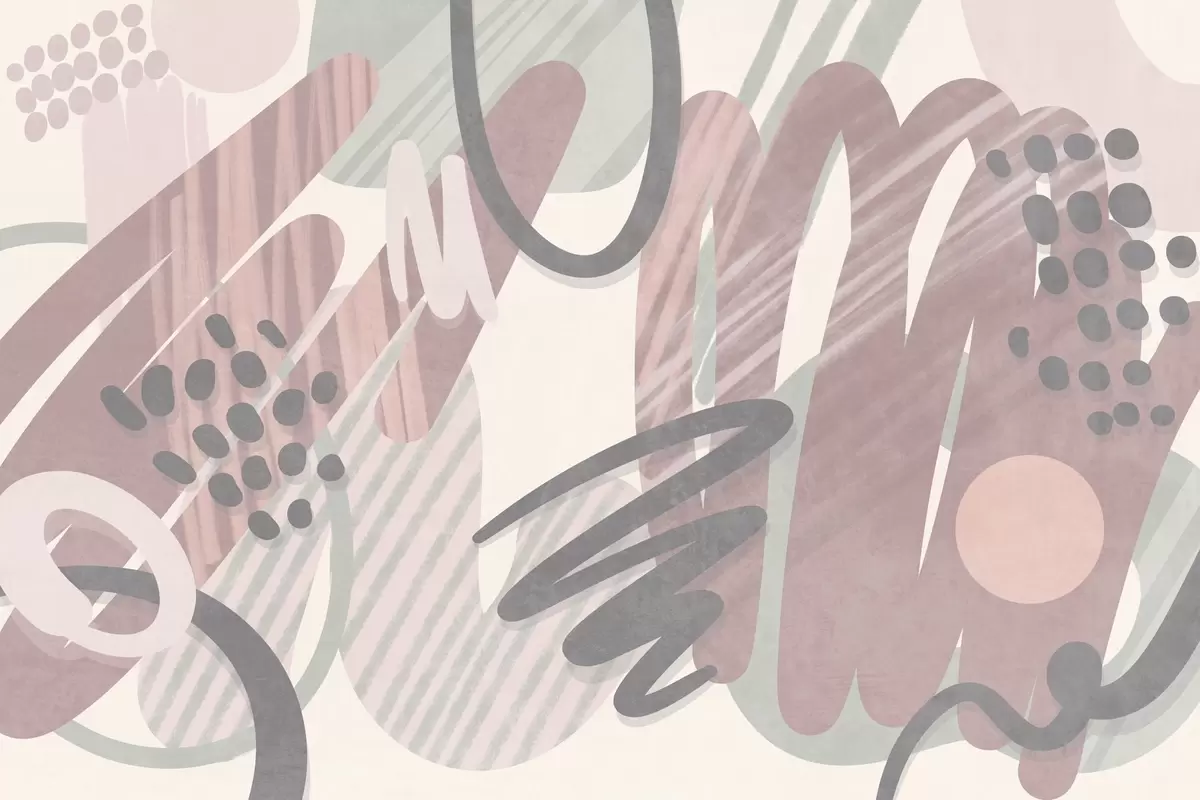 Papel tapiz Estampado abstracto con texturas, formas orgánicas, garabatos y puntos en tonos pastel apagados Nr. w09774v1
