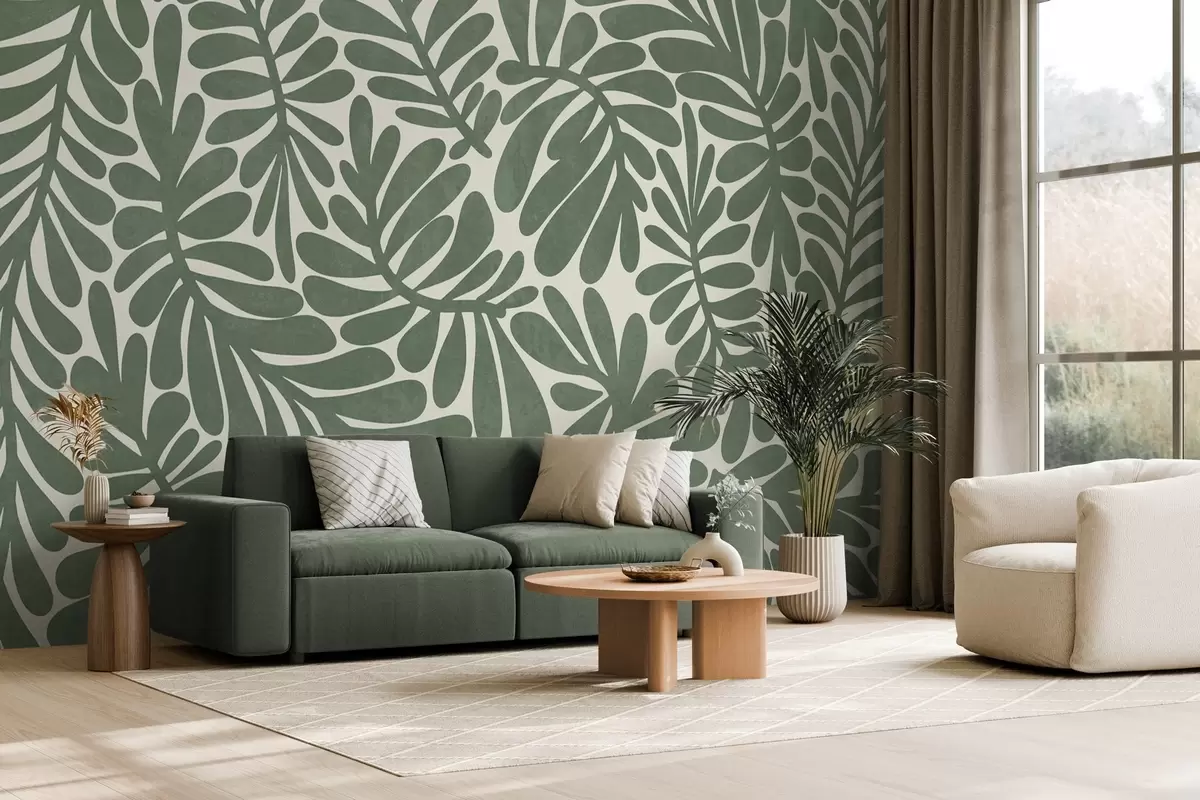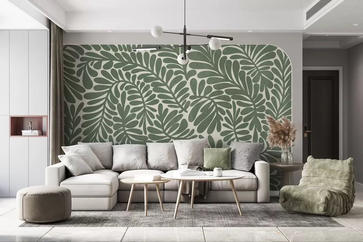 Papel tapiz Hojas verdes estilizadas sobre un fondo claro, ilustración con textura Nr. w09775v2