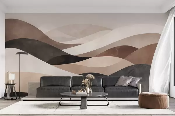 Papel tapiz Olas abstractas en tonos beige arena Nr. w09792