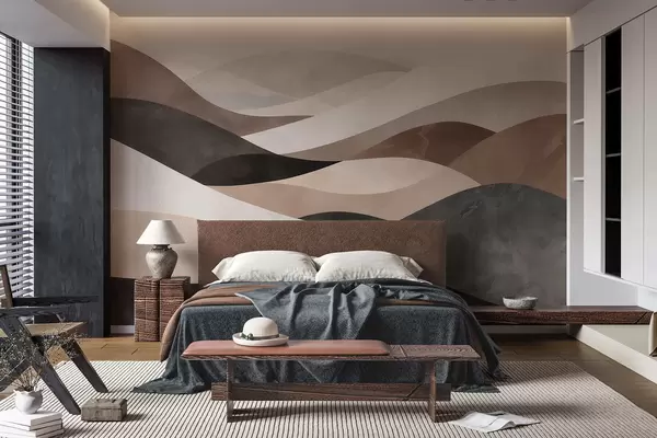Papel tapiz Olas abstractas en tonos beige arena Nr. w09792