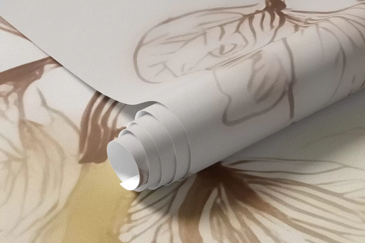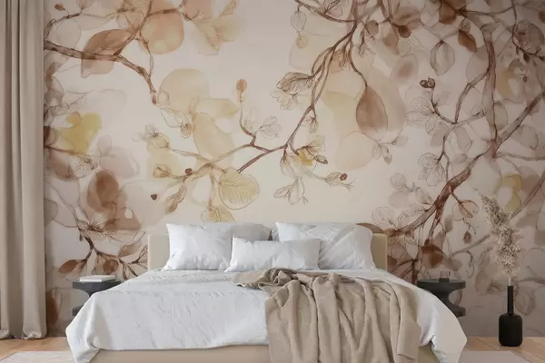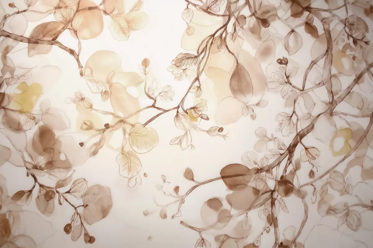 Papel tapiz Ramas etéreas que cuelgan en tonos beige, en estilo acuarela Nr. w09795