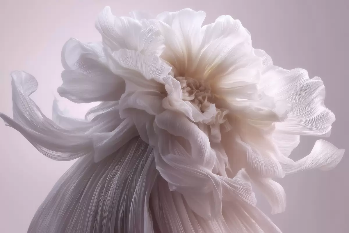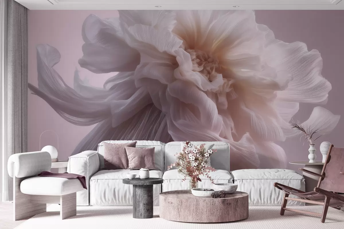 Papel tapiz Flor de seda con volumen en tonos rosa pálido y beige Nr. w09809