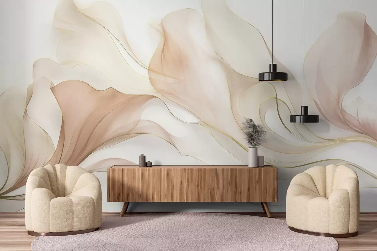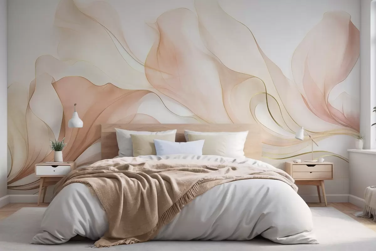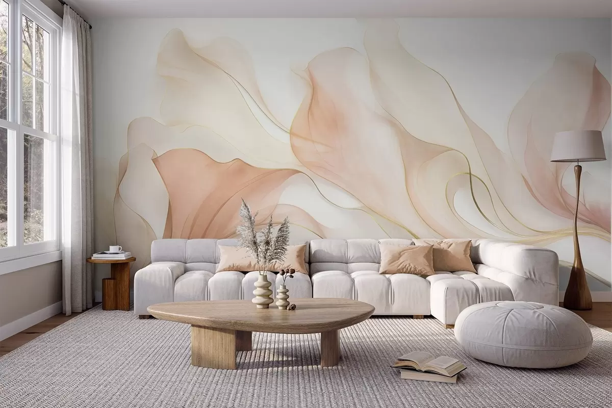 Papel tapiz Textura fluida y abstracta en tonos melocotón y crema con líneas delicadas Nr. w09815