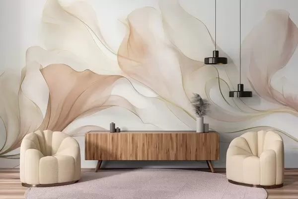 Papel tapiz Textura fluida y abstracta en tonos melocotón y crema con líneas delicadas Nr. w09815