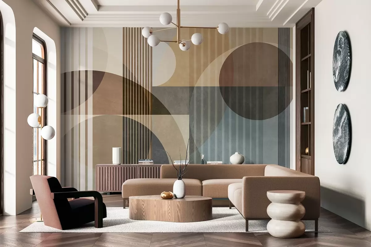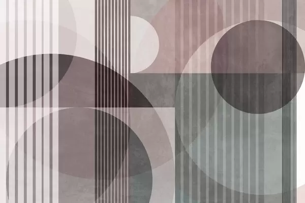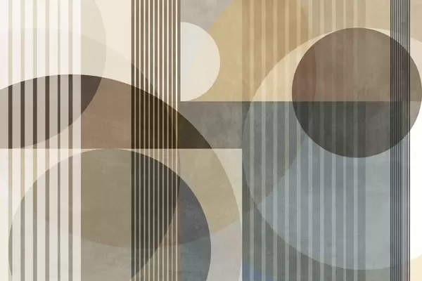 Papel tapiz Formas geométricas abstractas con círculos y líneas, tonos tierra apagados, composición con texturas y capas Nr. w09834