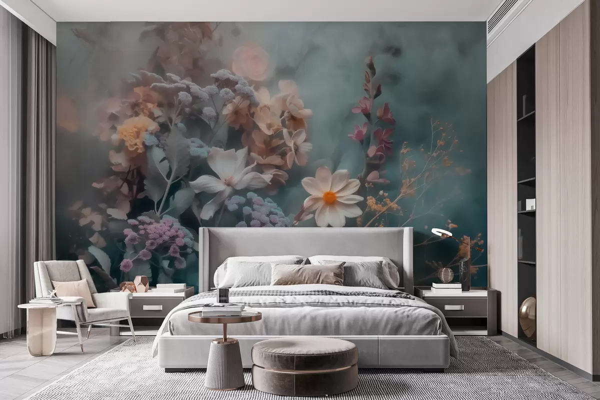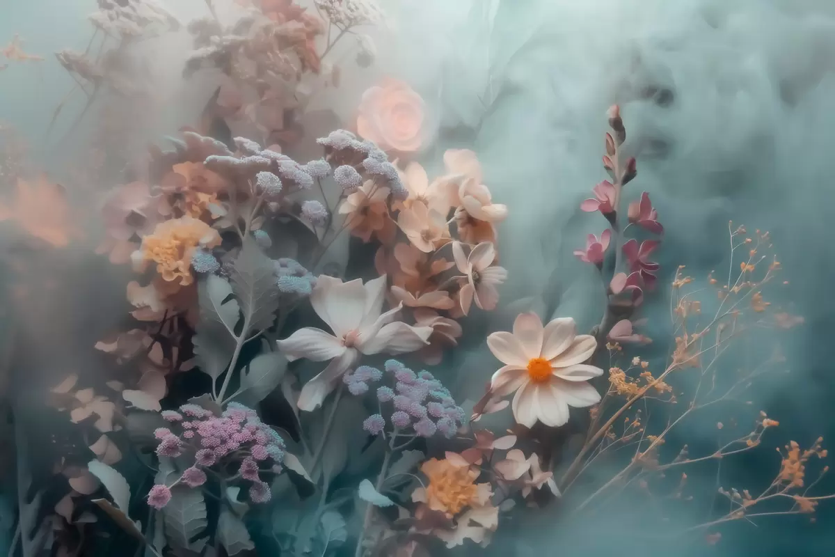 Papel tapiz Una composición de ensueño de flores silvestres envuelta en una ligera bruma de tonos pastel Nr. w09846