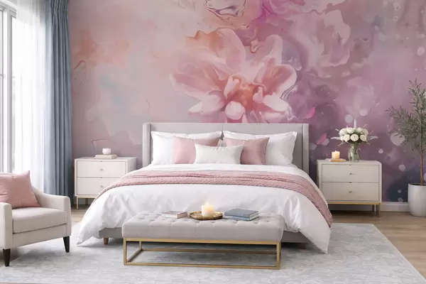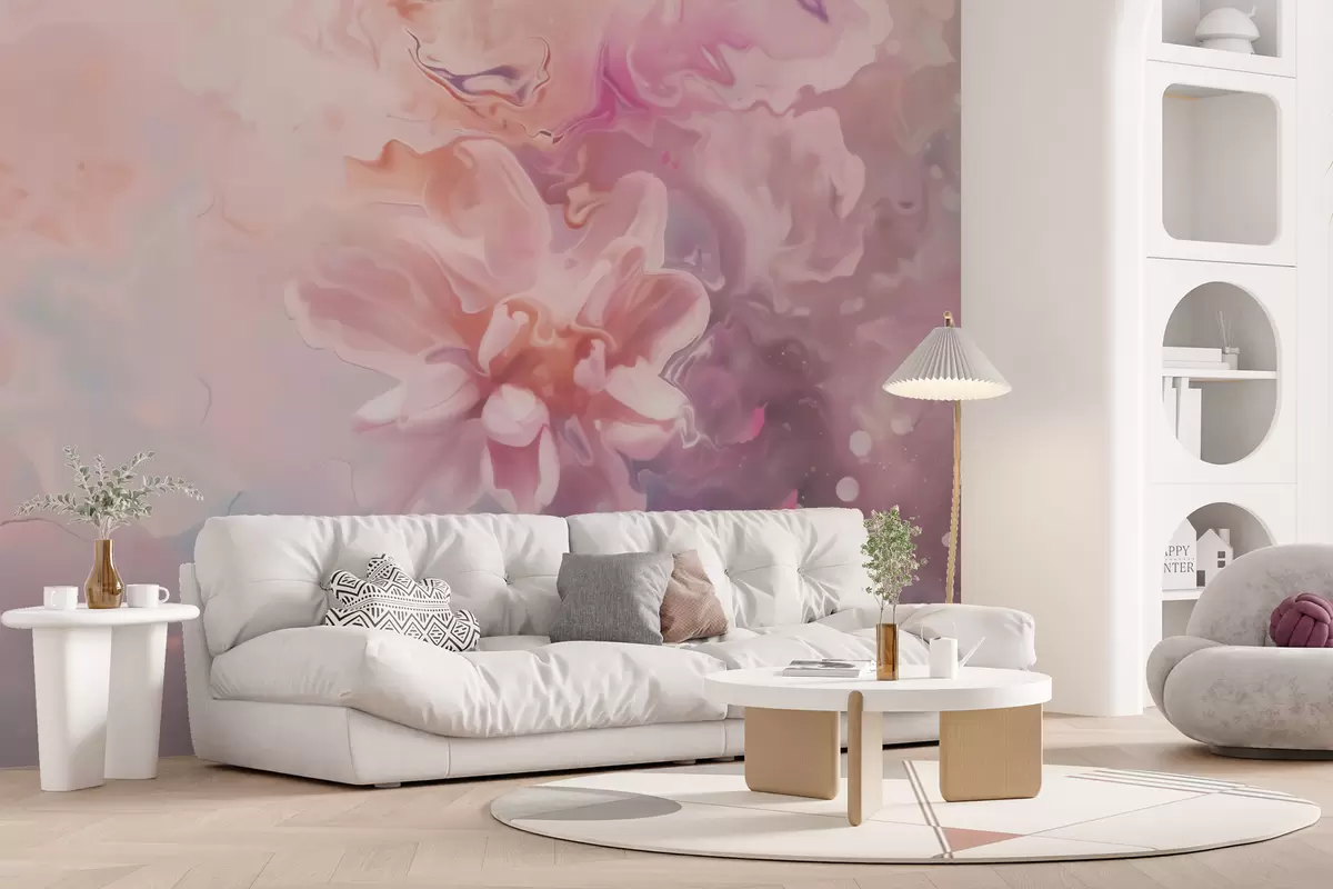 Papel tapiz Una composición abstracta con una flor y suaves tonos rosados en estilo acuarela Nr. w09859