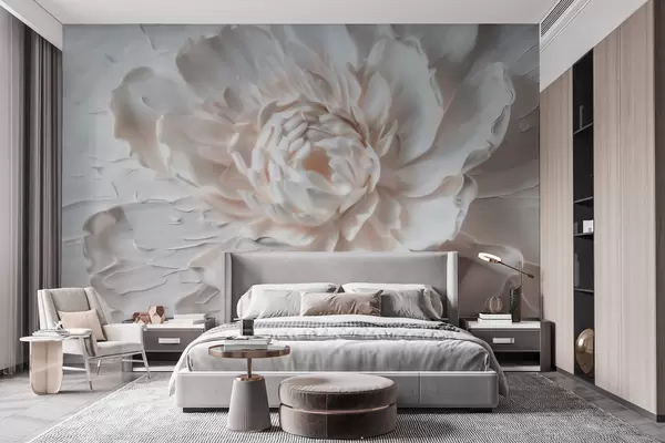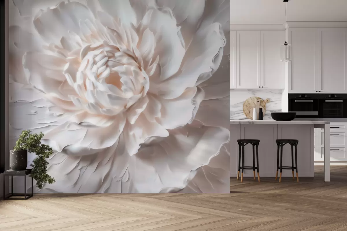 Papel tapiz Una delicada flor en bajorrelieve con pétalos lisos en tonos claros Nr. w09861